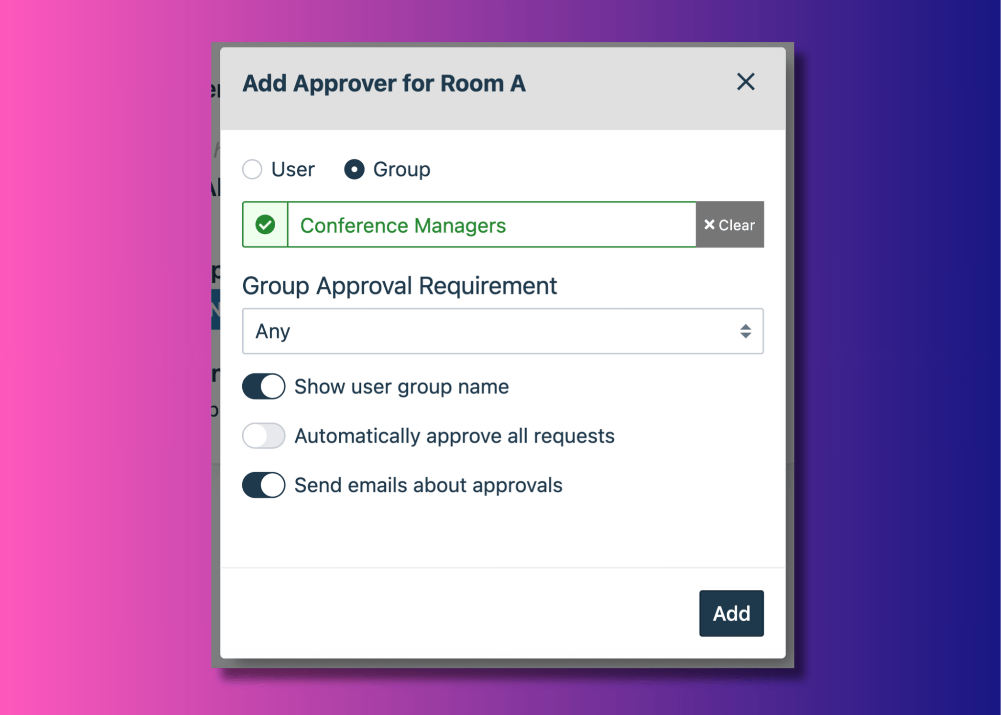We are excited to announce the launch of Approver Groups. This feature allows an administrator to create a group of users and allow any, all, or a specific number of users in that group to approve a reservation or request.